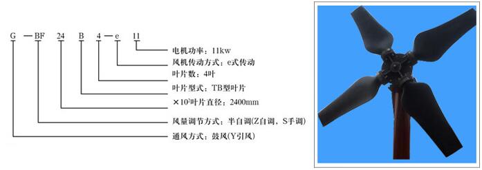 (2) BF:不停機(jī)半自動(dòng)調(diào)角式(簡(jiǎn)稱半自調(diào))風(fēng)機(jī)