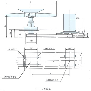 三、空冷器風(fēng)機(jī)傳動(dòng)方式及安裝結(jié)構(gòu)尺寸