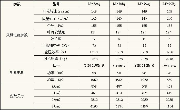 LF-70風(fēng)機(jī)性能參數(shù)一覽表