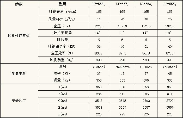 LF-55風(fēng)機(jī)性能參數(shù)一覽表